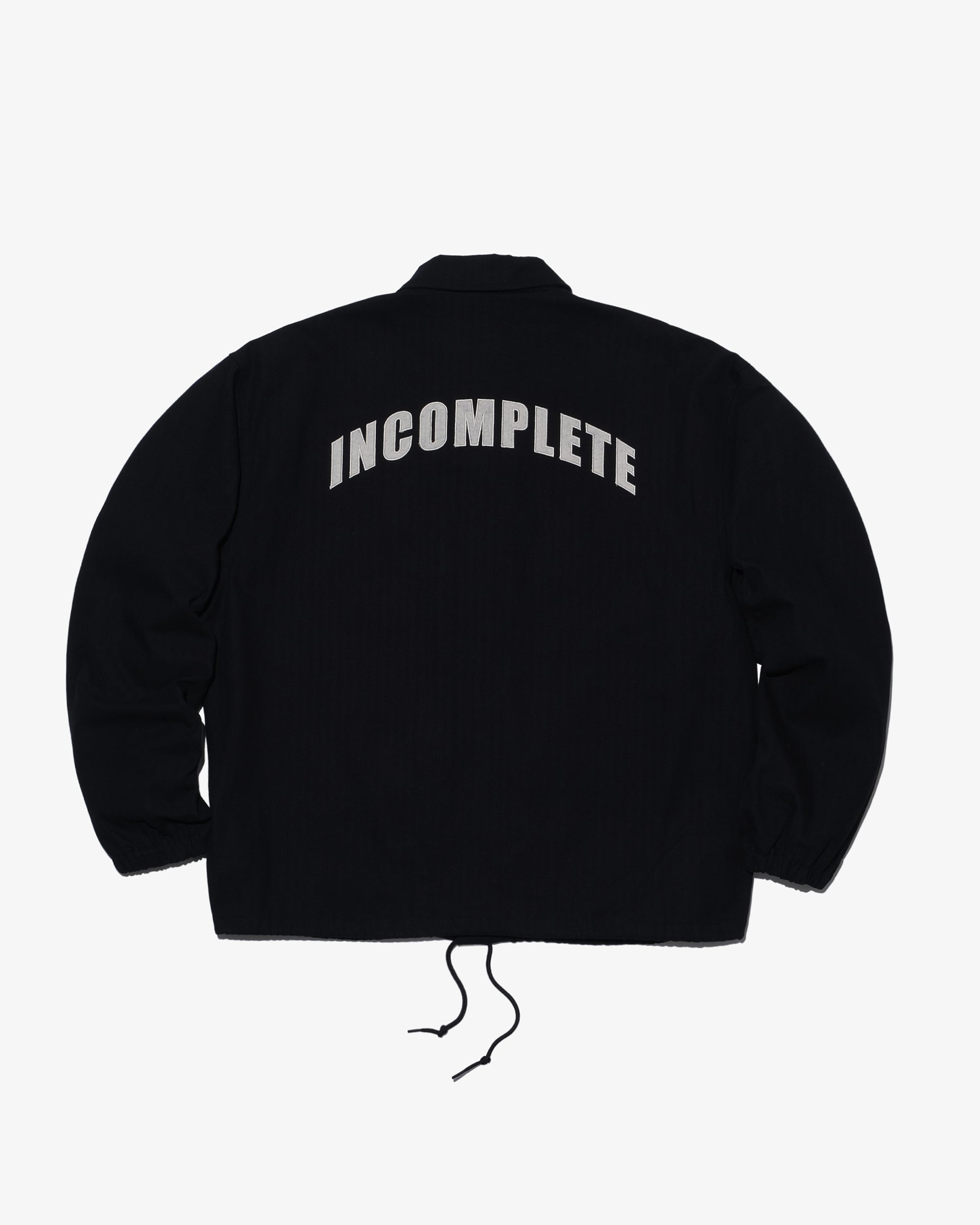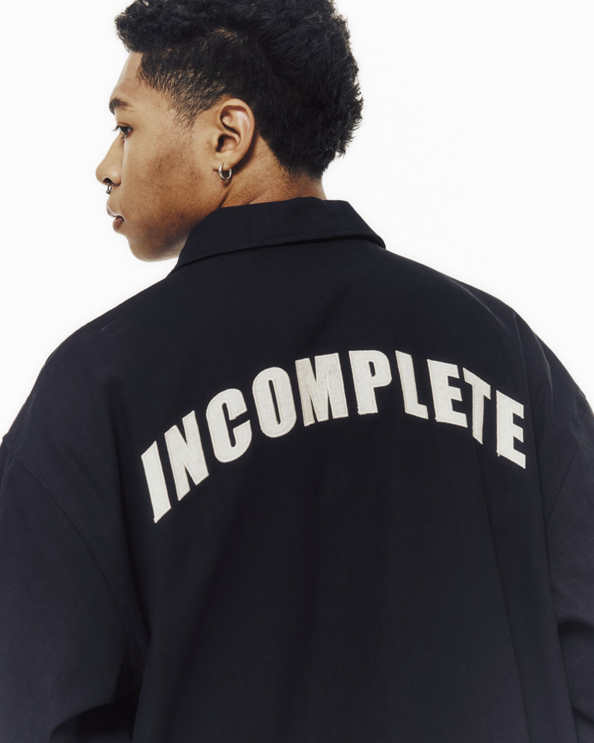 ナイロンが定番のコーチジャケットを、ミリタリー由来のヘリンボーン生地で仕立てました。素材の意外性がINCOMPLETEらしさを際立たせます。裏地には滑らかなサテンを採用し、無骨な表情とのコントラストも楽しめる一着です。