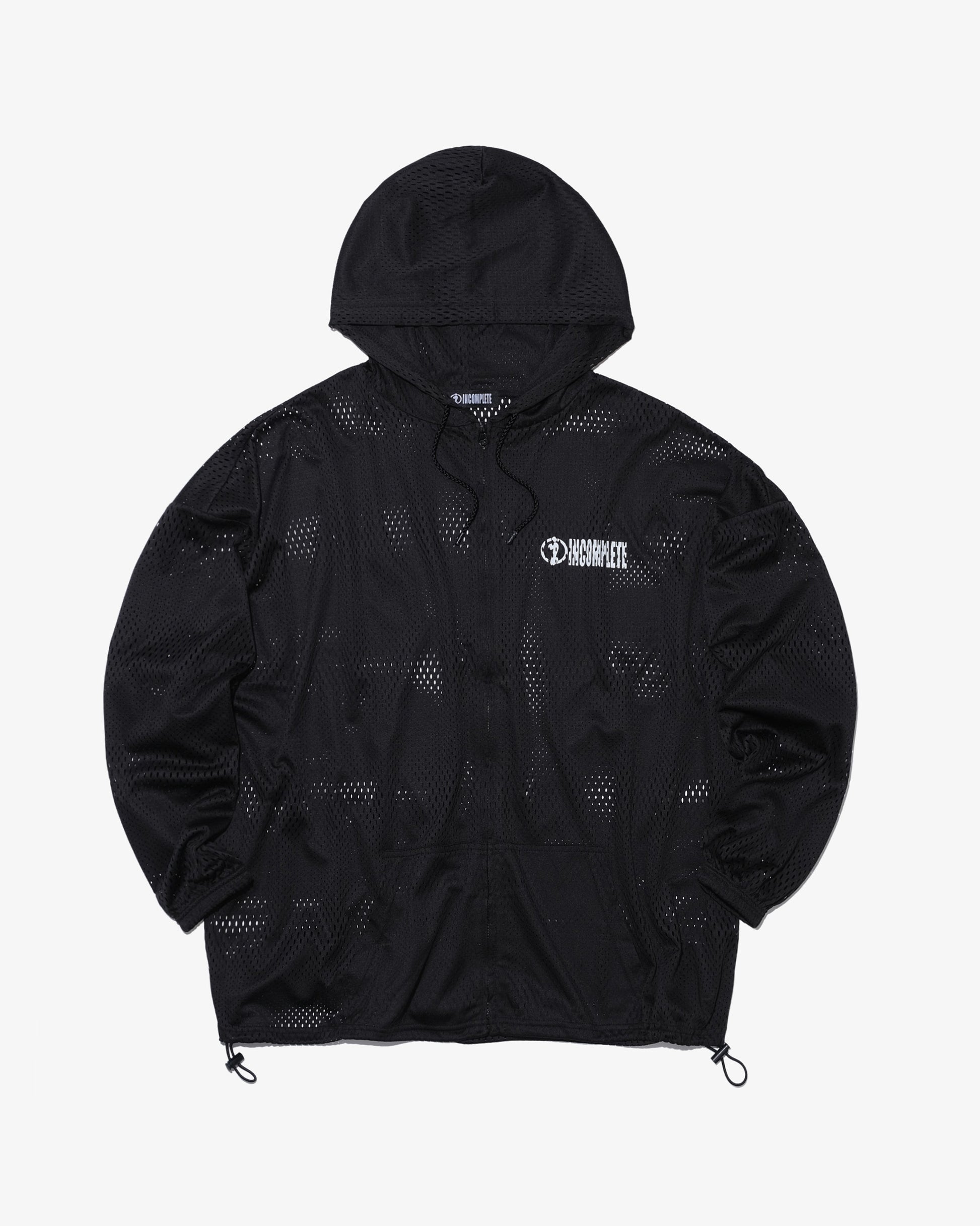 Mesh zip hoodie -BLACK-